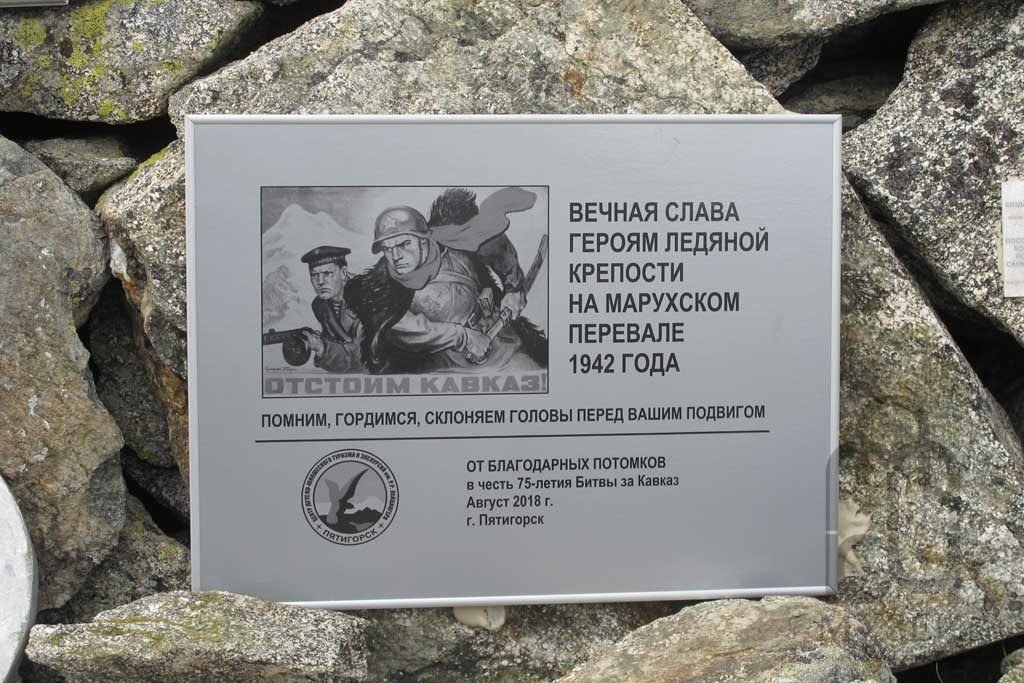 Летом 1962 года, чабан Магомед Кочкаров, обнаружил у подножья Марухского ледника останки советских воинов. Это и послужило началом раскрытия истории боев с лета по осень  1942 года, на перевалах Кавказа, и уже позже, в память об этом подвиге советских воинов на месте боевых действий, уже позже был установлен обелиск.