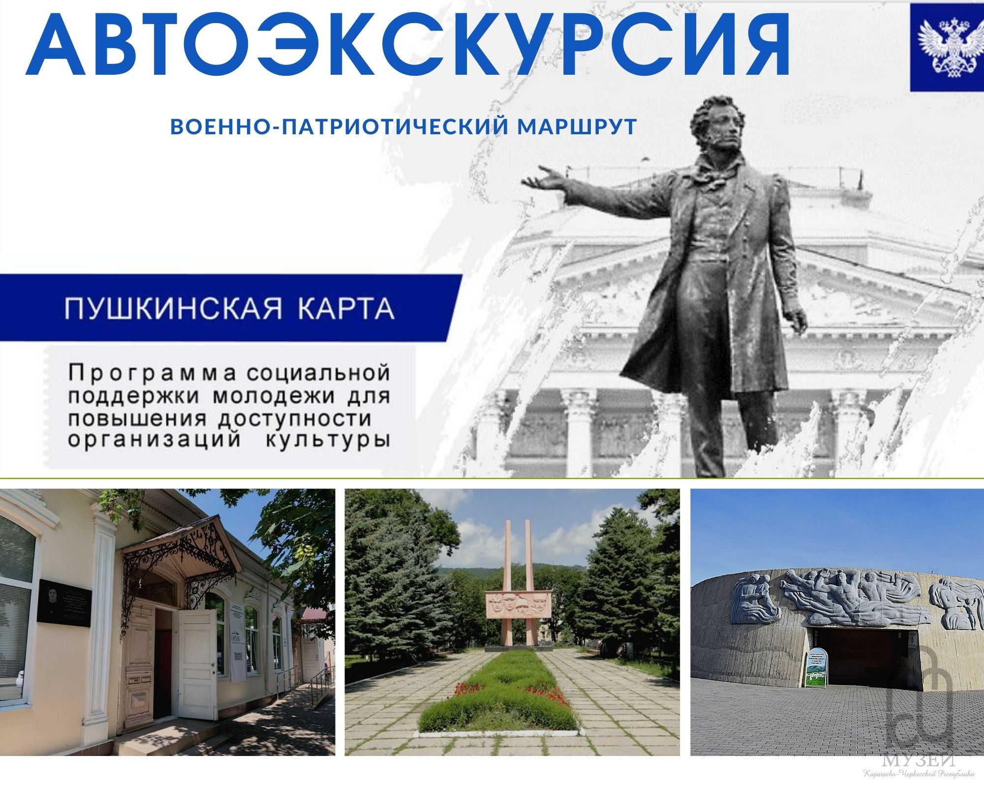 Военно-патриотический маршрутВ рамках данного маршрута экскурсанты посетят зал Годы, опалённые войной в Выставочном павильоне (г. Черкесск, ул. Красноармейская, д.58), далее состоится поездка к Мемориальному комплексу воинам, погибшим в Вели́кой Оте́чественной войне (г. Усть-Джегута) и конечный пункт назначения – Музей-памятник защитникам перевалов Кавказа (посёлок город. типа Орджоникидзевский). Экскурсия включает в себя лекции научных сотрудников музея-заповедника, просмотр документального фильма "Обелиски в горах",рассказывающий о "Битве за Кавказ", кофе-брейк. В стоимость маршрута так же входит трансфер.